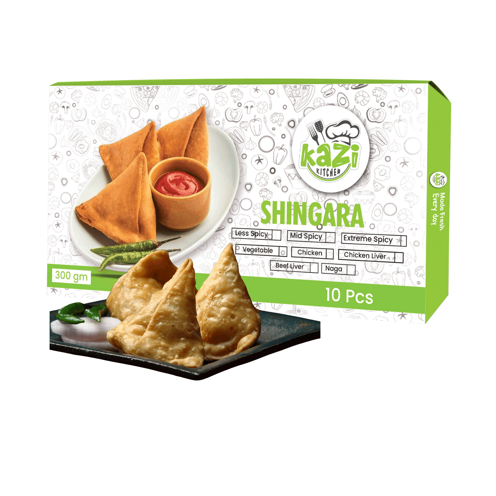 Ingredients: Chicken Liver, Potato and seasonal vegetable, Salt, Ginger, Garlic, and Mixed Spices, Wheat Flour and water.